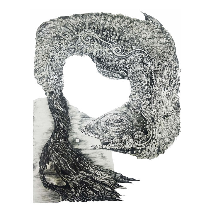 私の絵には文様が描かれています。文様には服を彩る装飾や地図記号まで様々なものがありますが、なかでも縄文土器の文様は鑑賞者の想像を掻き立てます。私の文様表現への追求は、縄文土器のように自由に描いてみたいという想いから始まります。